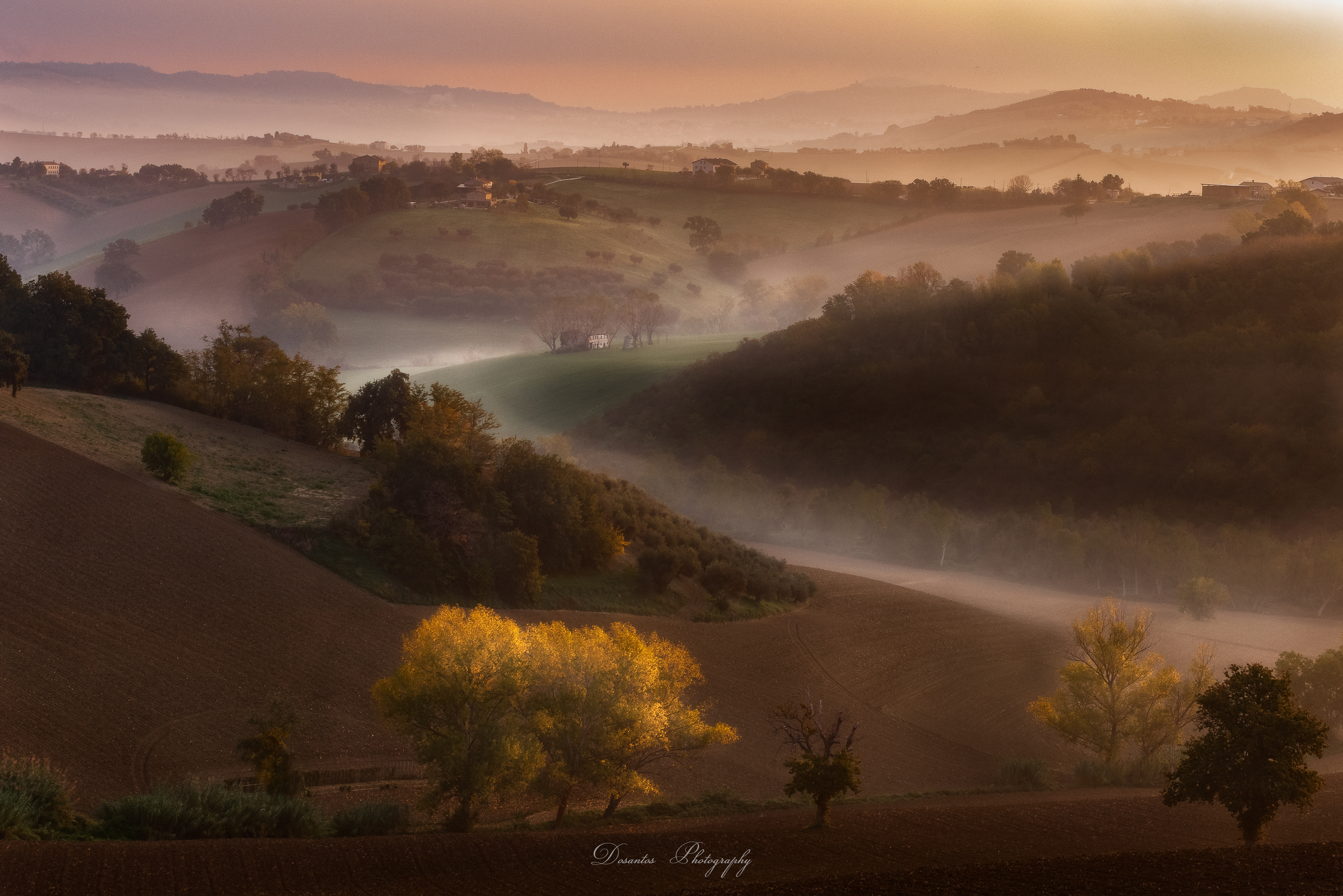 Primi luci con nebbia colline Marchigiane